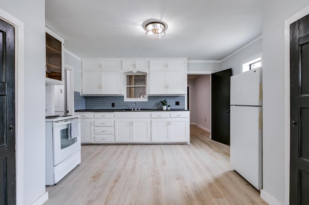 2-bedroom, 1-bath home offering 816 sq ft of cozy living space. This gem features no carpet, central heat and air, and comes complete with a stove and refrigerator—making it truly move-in ready. You'll love the stylish curb appeal a bold blue front door, and natural wood shutters that add warmth and character. Inside, enjoy easy maintenance flooring and a layout perfect for a first-time buyer, small family, or savvy investor