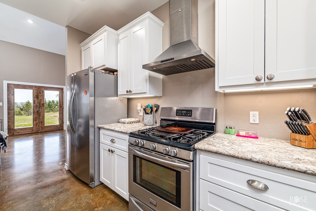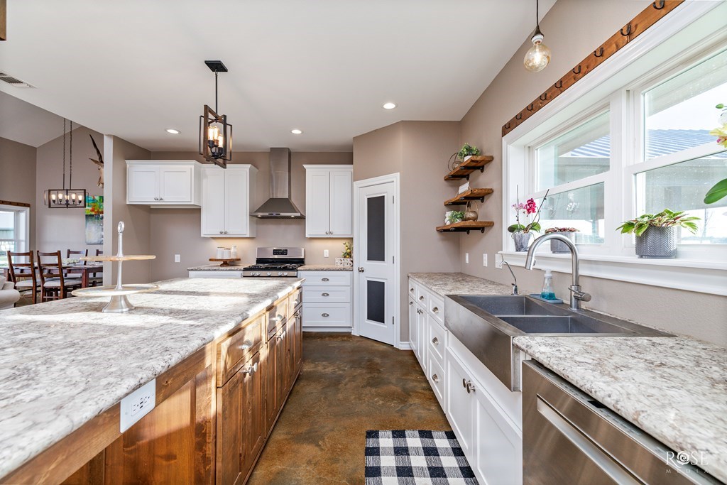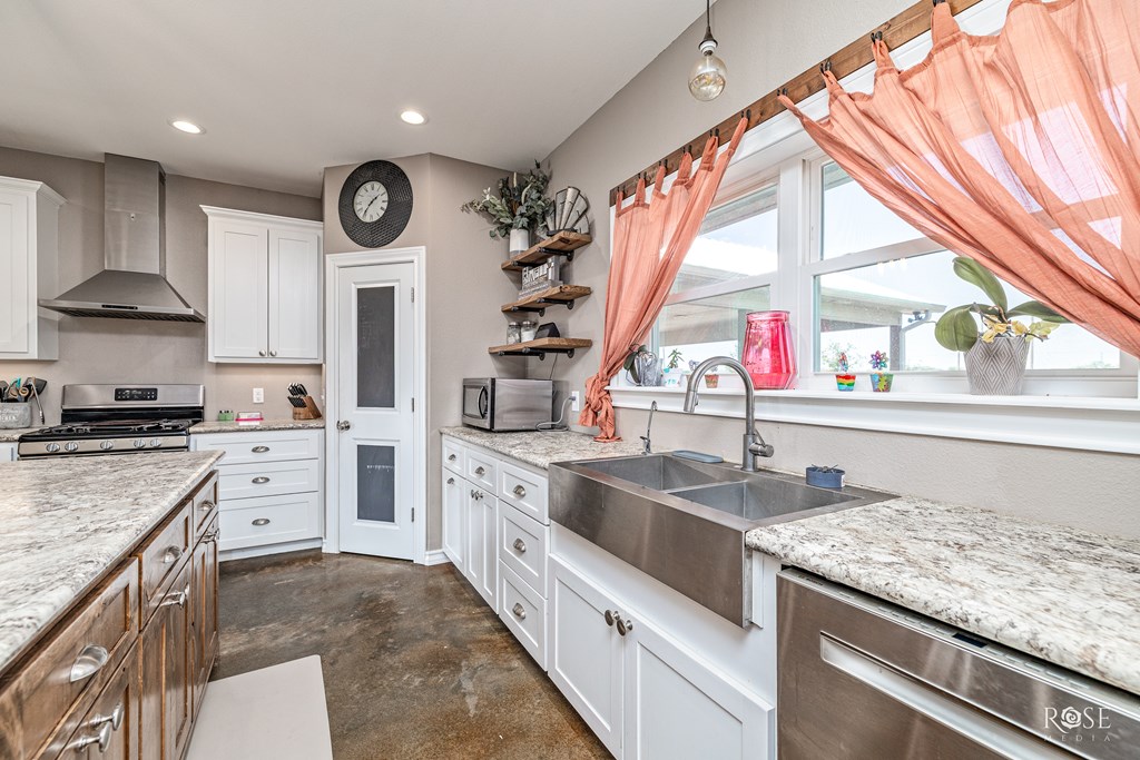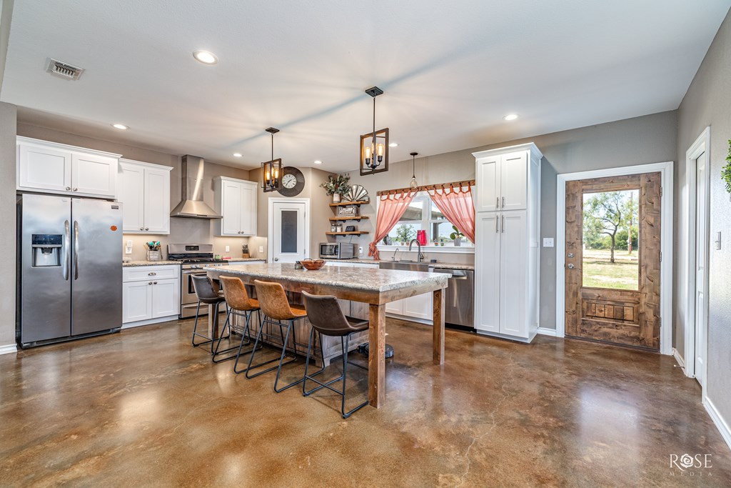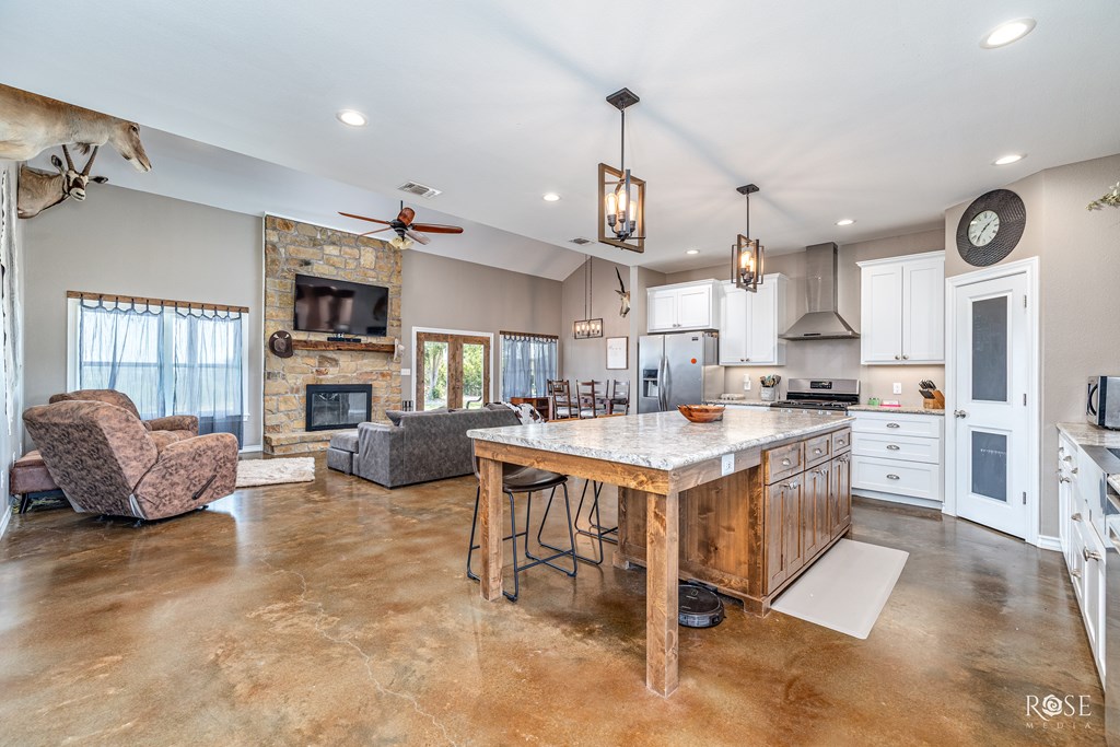 RARE RIVERFRONT RETREAT ON 5 ACRES!! Don't miss this stunning 3 bed, 2 bath home nestled on 5 peaceful acres with river frontage, abundant wildlife and views that will take your breath away. Located near the end of a quiet road with friendly neighbors and minimal traffic. This property offers the perfect blend of privacy and connection to nature. Inside, you will find a vaulted living room with a striking fireplace, an oversized kitchen with a 9 ft island (storage on both sides!) and generously sized bedrooms. The concrete master closet doubles as a storm shelter and the entire home is designed with handicap accessibility in mind: 3 ft doors, no thresholds and a walk in shower. Step outside to a 10 ft back porch overlooking the valley and river. A perfect front-row seat to watch storms roll in or enjoy peaceful sunsets. Bonus features include a 2-sided barn and a separate studio space. This one-of-kind property is more than a home--it's a LIFESTYLE! Schedule your showing today!