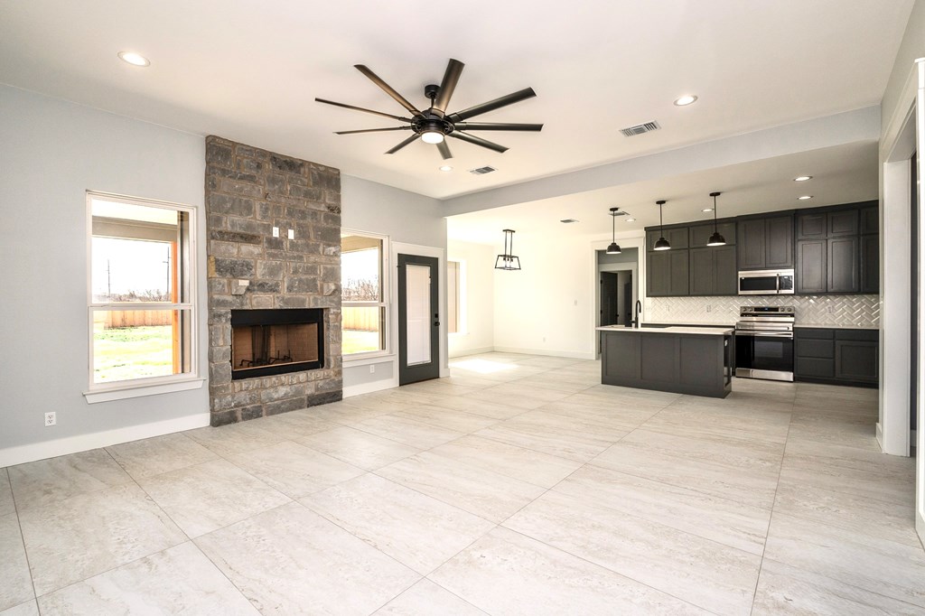The Seller is offering a $13,000 Buyer Incentive! Take a look at this beautiful new construction home! It features 3 bedrooms, 2 bathrooms, and a bonus room that can function as an office or a fourth bedroom. You will fall in love with this house as soon as you step inside. The layout is open and inviting, with a spacious living area that includes a cozy fireplace. The kitchen has stylish granite countertops, plenty of cabinet space, ample workspace, and a walk-in pantry for extra storage. The bedrooms are arranged in a split layout for added privacy, and the primary suite includes a luxurious bathroom and a spacious walk-in closet. This home is situated on a large lot and features a covered patio, as well as a large garage with plenty of storage options. It is conveniently located near shopping and restaurants!