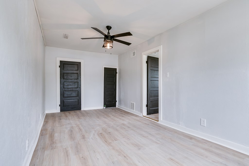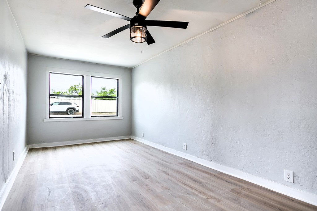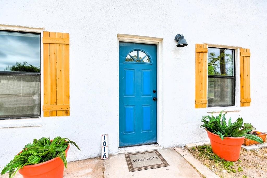 2-bedroom, 1-bath home offering 816 sq ft of cozy living space. This gem features no carpet, central heat and air, and comes complete with a stove and refrigerator—making it truly move-in ready. You'll love the stylish curb appeal a bold blue front door, and natural wood shutters that add warmth and character. Inside, enjoy easy maintenance flooring and a layout perfect for a first-time buyer, small family, or savvy investor