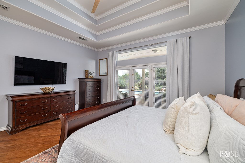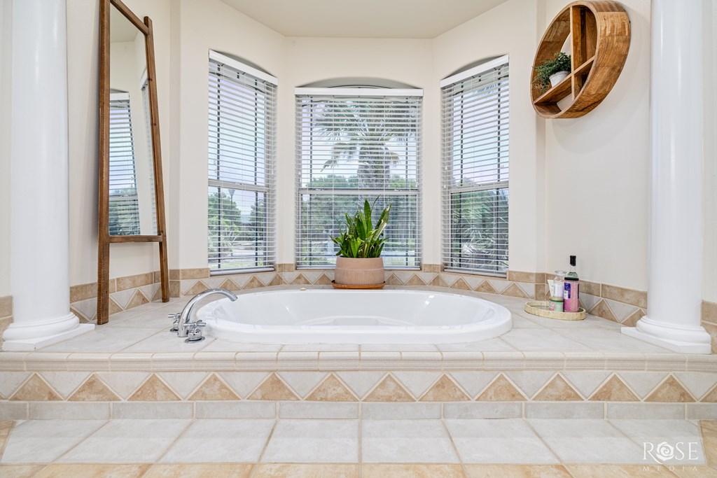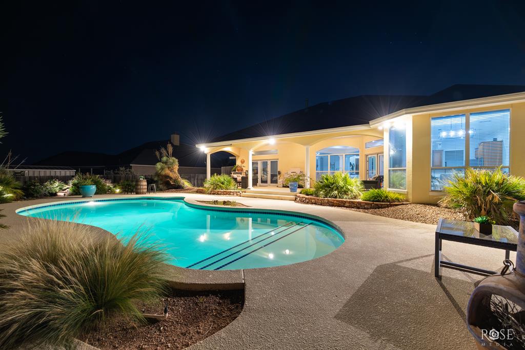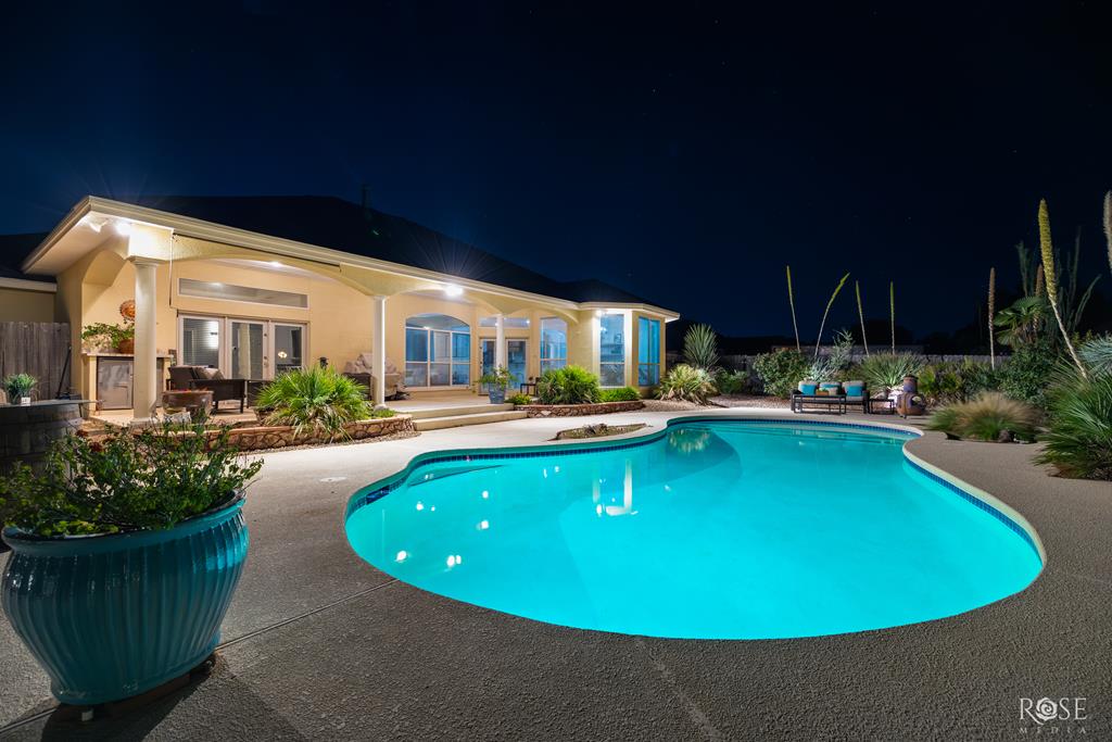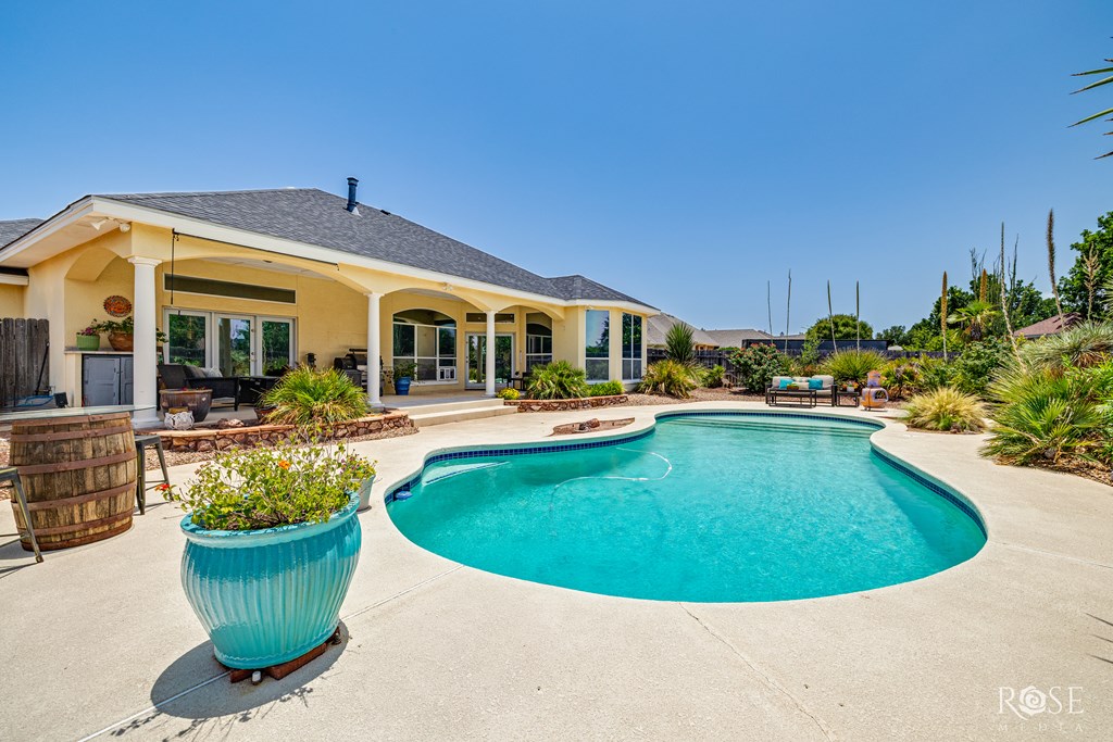 Welcome to this stunning custom home in The Upper Bluffs, perfectly situated on an extra-large lot with endless possibilities, whether you're dreaming of a workshop, extra parking, or simply room to spread out. Inside, you'll find tall ceilings with custom architectural details and an abundance of natural light throughout. The spacious kitchen offers extensive cabinetry and countertop space, perfect for everyday living. Both bathrooms and the laundry room feature new Quartzite countertops, and the home provides storage options in every room, including a laundry room with built-in storage. The primary suite features direct access to the backyard and leads into a spa-like bathroom with his & hers closets, dual vanities, LED mirrors, a large soaking tub, and a spacious walk-in shower. Step outside to your own private oasis with a sparkling pool, a covered patio for year-round enjoyment, and imported palm trees. A new roof will be installed prior to the closing, adding peace of mind.
