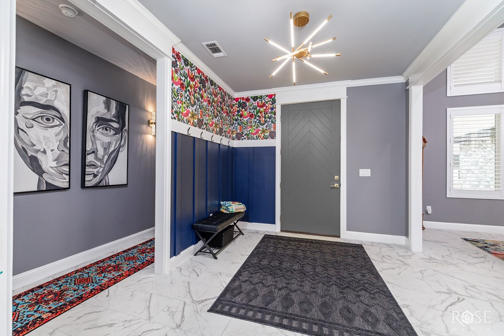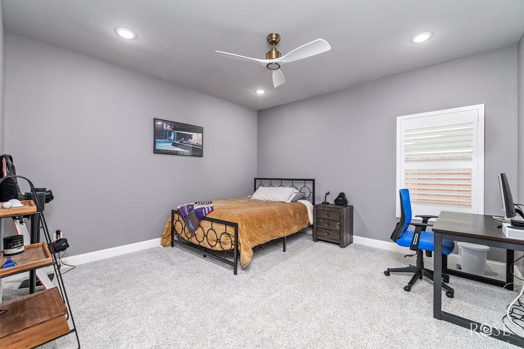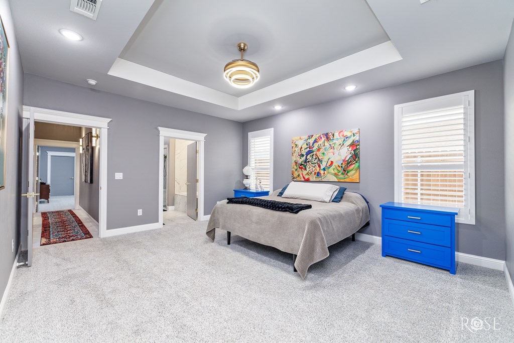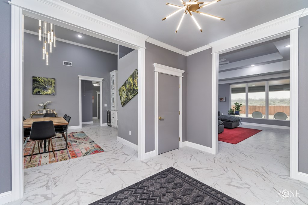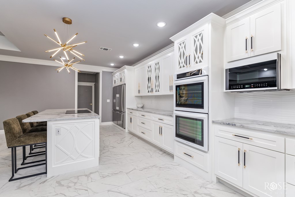 Welcome to your dream home! This stunning property features a Jack and Jill Master Suite with two oversized Master Bedrooms connected by a luxurious Master Bath Suite. Each bedroom boasts its own expansive Hollywood-style closet with built-in display cabinets. On the opposite side of the home, you'll find additional Jack and Jill rooms, perfect for family, guests, or versatile living. Entertain in grandeur with an extravagant Dining Room, complete with a wet bar. The open-concept floor-plan flows seamlessly into a Gourmet Kitchen and extends to an impressive Outdoor Kitchen on a massive back porch. Step outside to a beautifully xeriscaped front yard, paired with a Sprinkler System and lush Bermuda TiffTuff SOD Grass in the back and sides, all enclosed by a stained cedar privacy fence with durable metal posts. This energy-efficient home is equipped with all-foam insulation, Bluetooth lights in the bathrooms, and an EnerTel Alarm System with HD cameras for peace of mind.
