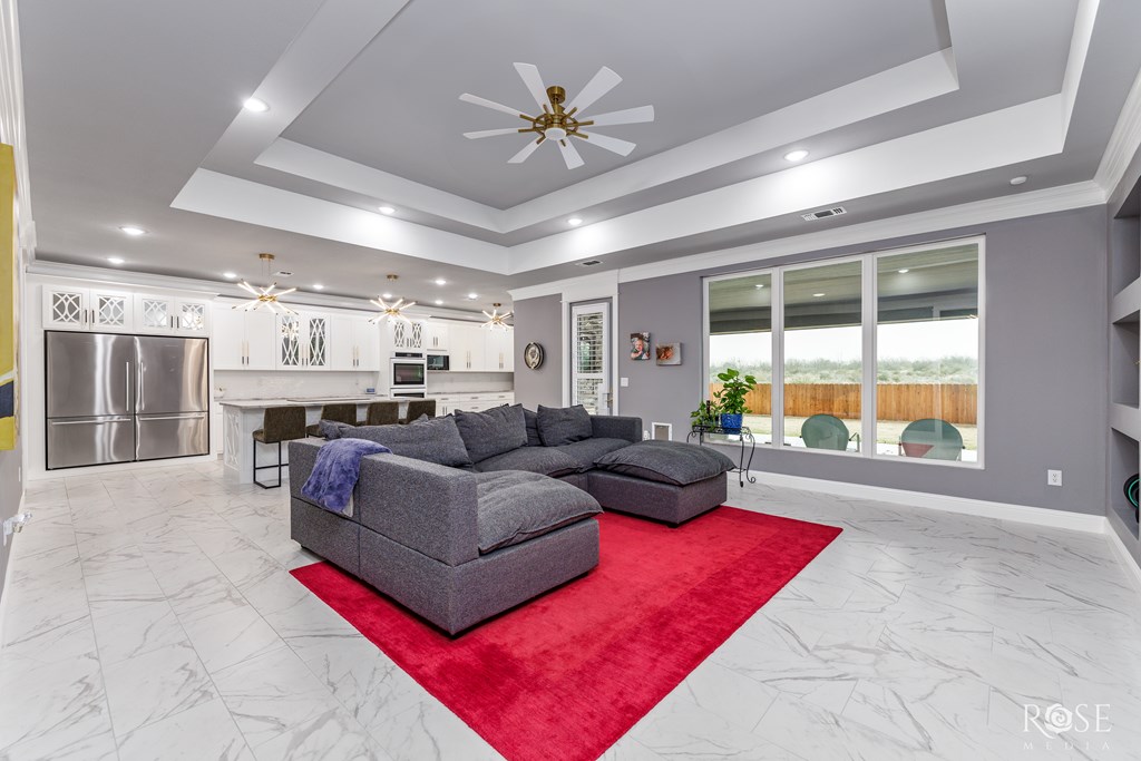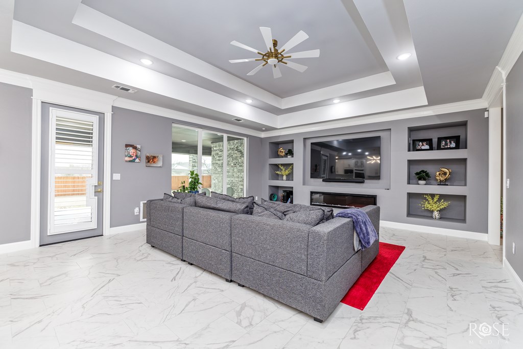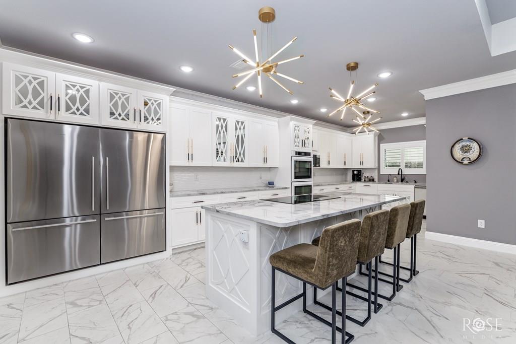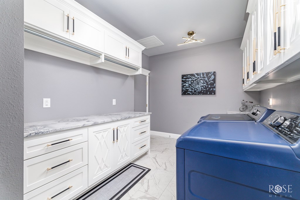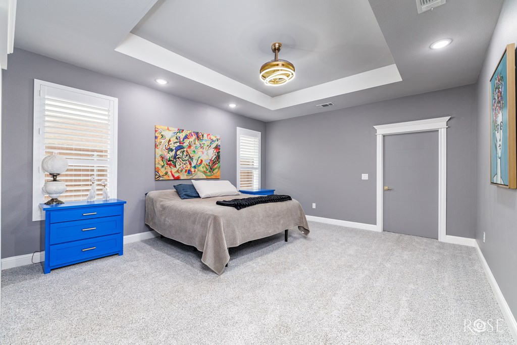 Welcome to your dream home! This stunning property features a Jack and Jill Master Suite with two oversized Master Bedrooms connected by a luxurious Master Bath Suite. Each bedroom boasts its own expansive Hollywood-style closet with built-in display cabinets. On the opposite side of the home, you'll find additional Jack and Jill rooms, perfect for family, guests, or versatile living. Entertain in grandeur with an extravagant Dining Room, complete with a wet bar. The open-concept floor-plan flows seamlessly into a Gourmet Kitchen and extends to an impressive Outdoor Kitchen on a massive back porch. Step outside to a beautifully xeriscaped front yard, paired with a Sprinkler System and lush Bermuda TiffTuff SOD Grass in the back and sides, all enclosed by a stained cedar privacy fence with durable metal posts. This energy-efficient home is equipped with all-foam insulation, Bluetooth lights in the bathrooms, and an EnerTel Alarm System with HD cameras for peace of mind.
