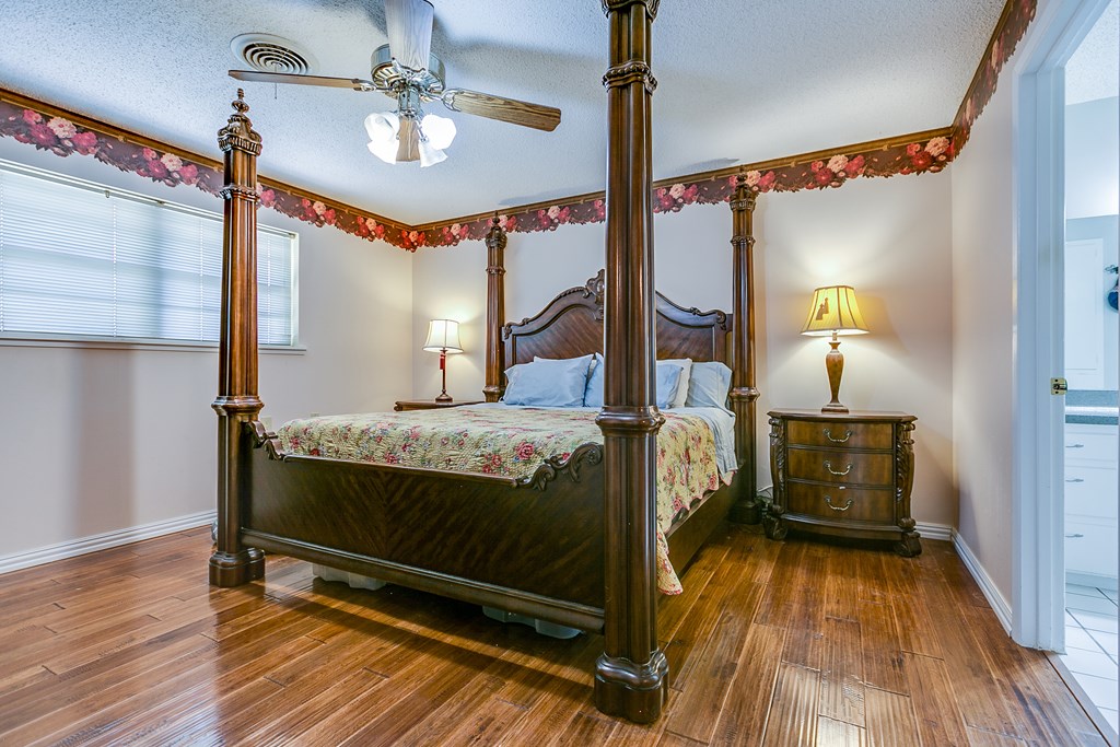 Step into your dream home located in a highly sought-after neighborhood! This stunning property boasts 5 bedrooms PLUS a dedicated office, offering ample space for relaxation and gathering! Spread over almost 3000 sqft., this home features beautifully updated elements including new bathroom vanities, hardwood floors, and freshly painted exterior. Step into the kitchen complete with a gas cook top, ample cabinetry, and a spacious butlers pantry for all of your cooking needs! Enjoy the tranquility of a spacious lot with established trees, an oversized driveway, and two inviting patios, perfect for social gatherings or quiet evenings. The property also includes a large yard with a wood storage shed, new gutters, and a sprinkler system, ensuring hassle-free living. Unique amenities such as the hot tub and proximity to swim and racquet facilities add to the allure of this exquisite home. Don't miss the opportunity to own this home!