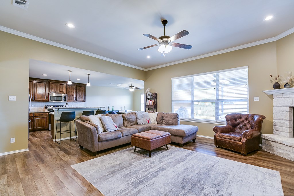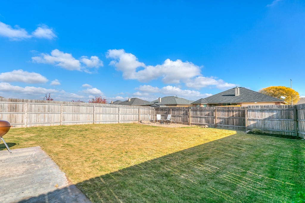Welcome to this stunning 3-bedroom, 2-bathroom home in the desirable Preston Wood subdivision, conveniently located near schools, shopping, and dining. Upon entering, you'll be greeted by beautiful floors and a striking stone fireplace that creates a cozy, inviting atmosphere. The spacious kitchen features granite countertops, custom cabinetry, panty, and stainless steel appliances ideal for both cooking and entertaining. The split-bedroom layout offers privacy, with a primary suite that includes a walk-in shower, soaker tub, double vanity, and large closet. Outdoors, enjoy a covered extended patio, privacy-fenced yard with a fire pit area, and a 2-car garage with alley access, plus an extended driveway for extra parking. With its generous space and fantastic features, this home is perfect for family gatherings—make it yours just in time for the holidays!