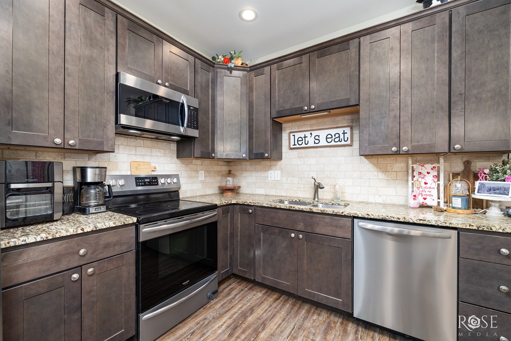 Hey there, future homeowner! Ever dream of a place that feels like home the moment you walk in? Well, 4722 Oaklawn Blvd is calling your name! This isn't just a house, it's a 3 bed, 2 bath, 1180 sq ft slice of awesome, built in 2020. Think open concept living, perfect for game nights & making memories. The kitchen? Prepare to be wowed! Stunning stained cabinets and trim, gleaming granite countertops, & a great pantry. Luxury vinyl flooring flows throughout, adding a touch of elegance. Out back, a huge yard with double gate entry awaits your imagination – think backyard BBQs and maybe even a pool? Relax on the covered patio while the sun sets. At 4722 Oaklawn Blvd, every detail has been crafted with care, creating a space that's not just a house, but a place you'll be proud to call home. Check out the video tour on YouTube by searching 4722 Oaklawn, San Angelo, TX.
