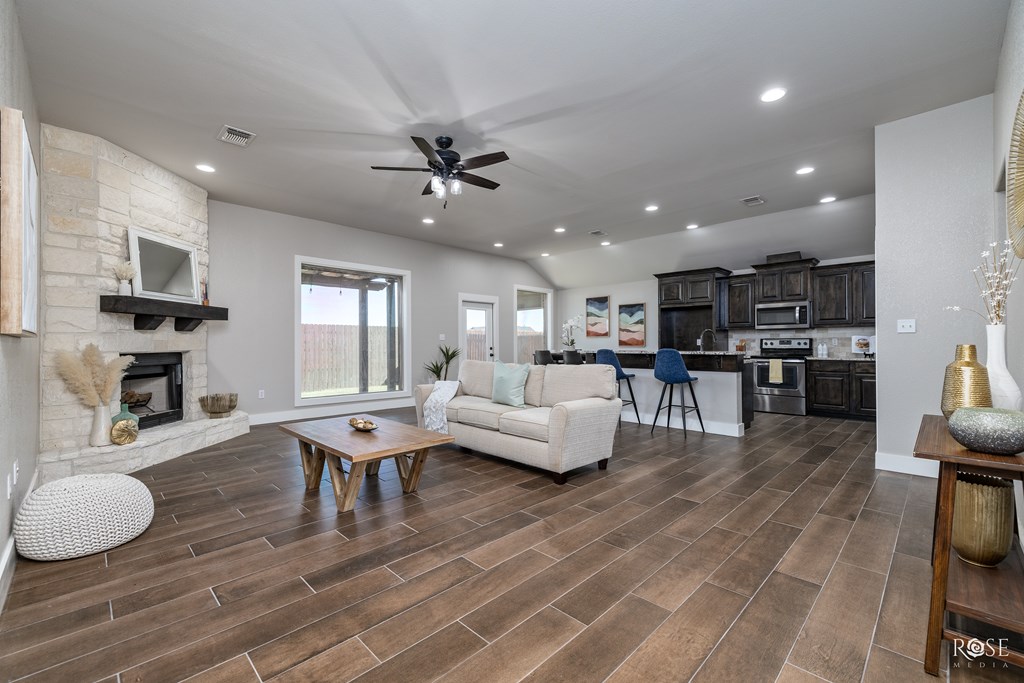 Welcome to this gorgeous 3-bedroom, 2-bathroom home nestled in the desirable Southland area. Step into a spacious living room with soaring ceilings and a beautiful brick, wood-burning fireplace, perfect for cozy nights. The kitchen is a chef's dream, offering plenty of cabinet and countertop space, highlighted by stunning granite countertops. The primary bedroom is impressively large, providing a serene retreat, while the modern, updated bathrooms are sure to impress. Throughout the home, natural light streams in, showcasing the gorgeous wood plank porcelain tile, with plush carpeting in the bedrooms for added comfort. The backyard is a private oasis with a pergola-covered patio area, enclosed by a large, tall privacy fence, making it perfect for outdoor relaxation or entertaining. This home truly offers a warm, welcoming atmosphere and all the modern touches you desire!