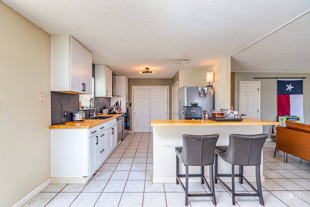 Fully renovated and move-in ready, this 3 bedroom, 2 bath home in Sonora, TX has been thoughtfully brought back to life. Step inside to find fresh paint, updated tile flooring, and an open-concept layout that seamlessly connects the living room and kitchen. The kitchen features all-new cabinets, butcher block countertops, a designated coffee bar, and brand new appliances—still under warranty. Both bathrooms have been completely redone with new vanities and tub/shower combos. Recent improvements for energy efficiency include a new water heater, serviced A/C unit, and upgraded exterior doors. Outside, the detached carport has been enclosed and currently serves as a workshop with space for up to three vehicles. Quietly situated in a peaceful neighborhood, this beautifully updated home is shown by appointment only.