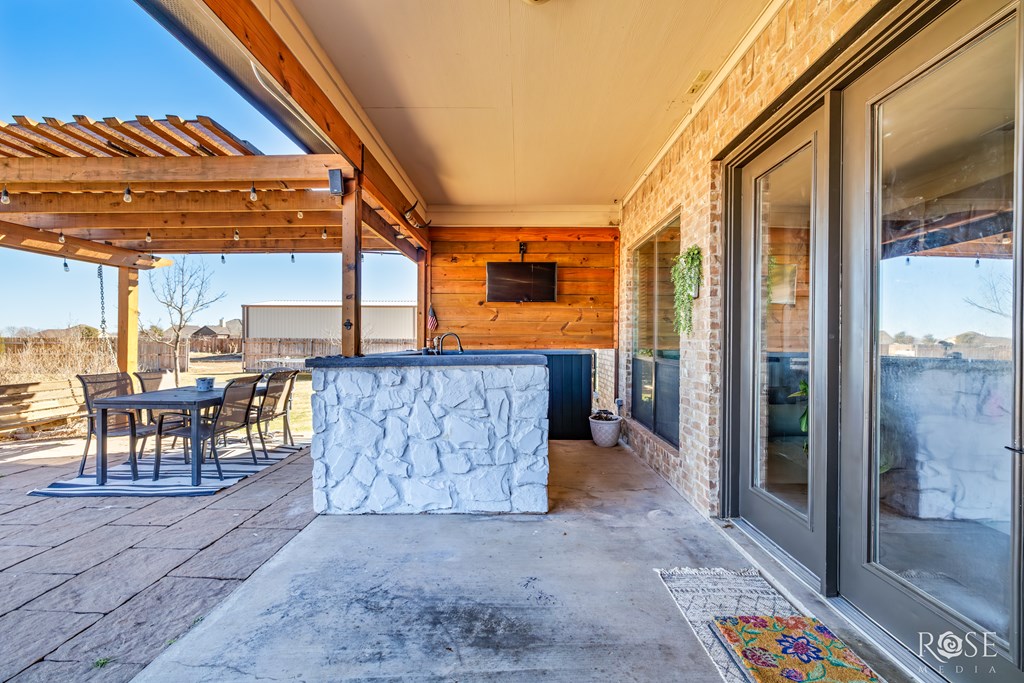 This is a stunning property! The spacious layout with 3-bedroom, 2-bathroom is situated on 1.24 acres in the desirable Iron Horse I subdivision in Wall, TX. This residence offers 2,245 square feet of living space and includes a formal dining, a rock fireplace, granite countertops, custom trim, and blinds throughout. Enjoy your outdoor life with family and friends around the sparkling pool and outdoor kitchen. Additional features include front and back sprinklers, a fenced backyard, a 16x24 storage building, and a good water well. Notably, a Millersview water meter has been purchased and set.